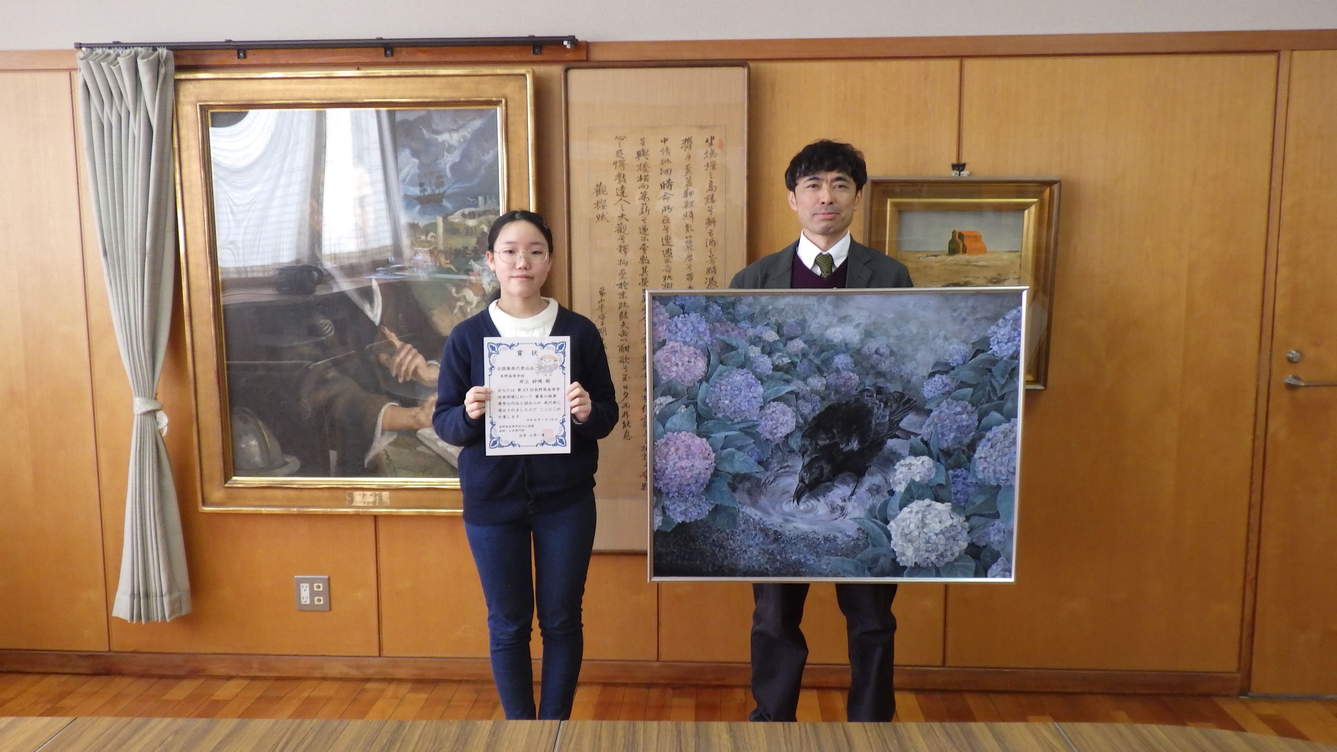 第47回長野県高等学校美術展において県代表に選出 2026.01.30 長高生の日常 1年5組の井上紗瑛さんは、第47回長野県高等学校美術展において県代表に選出され、全国展に出品することを学校長に報告しました。おめでとうございます。